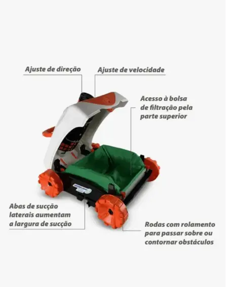 Permite ajustar a direção e o trajeto do robô, adaptando-se ao tipo de piscina.