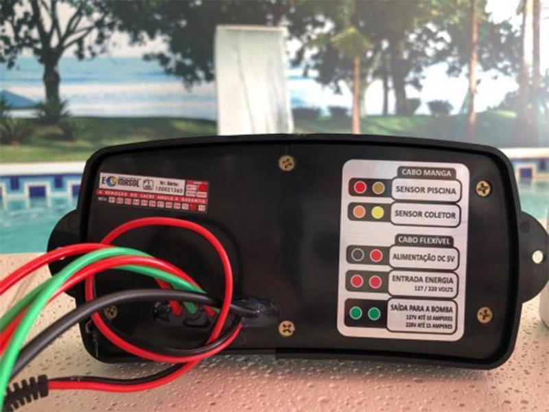 Ele controla automaticamente a circulação da água entre a piscina e as placas solares, garantindo aquecimento somente quando há ganho térmico real.