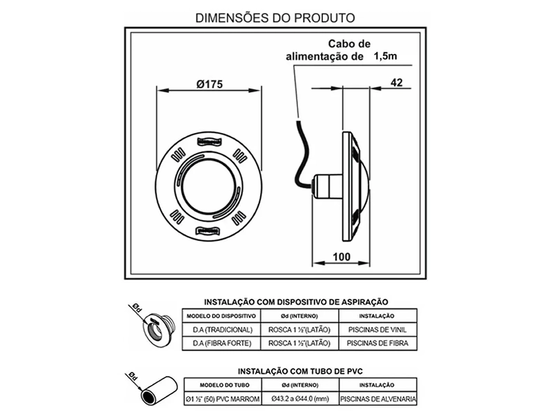 Os LEDs SMD de 5W garantem iluminação clara e bem distribuída em toda a piscina.